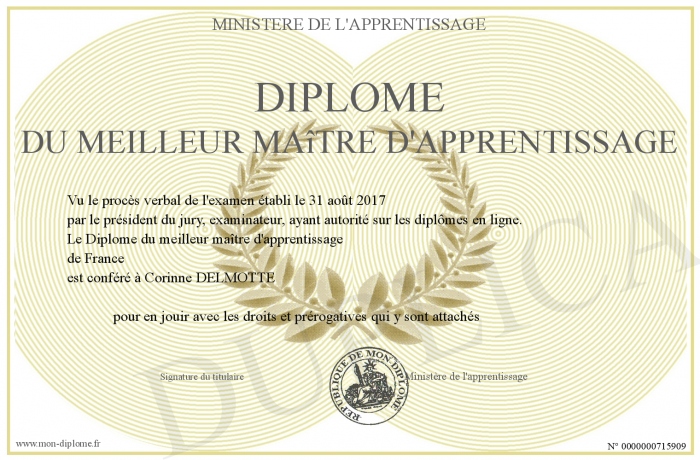 Envoyez par email votre Diplôme du meilleur maître d'apprentissage personalisé