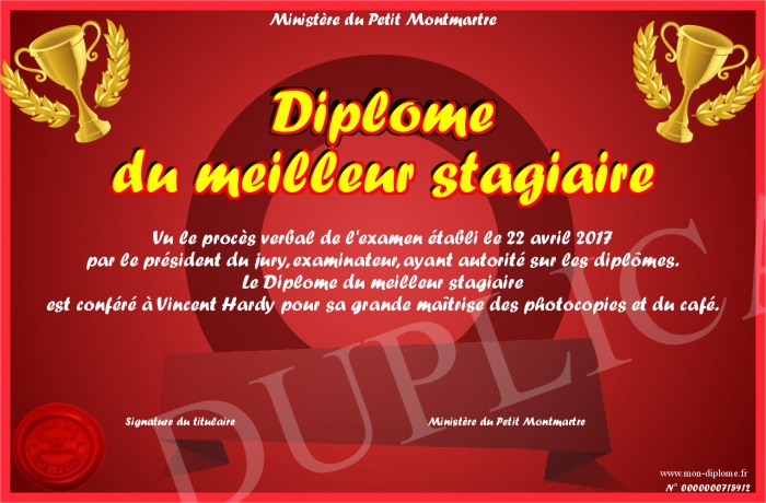 Envoyez par email votre Diplôme du meilleur stagiaire personalisé