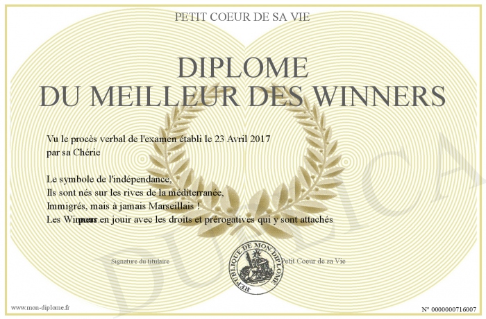 Envoyez par email votre Diplôme du Meilleur des Winners personalisé