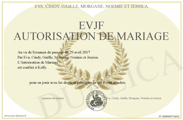 Envoyez par email votre EVJF AUTORISATION DE MARIAGE personalisé
