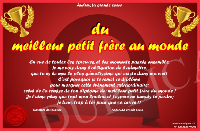 Envoyez par email votre du meilleur petit frère au monde personalisé