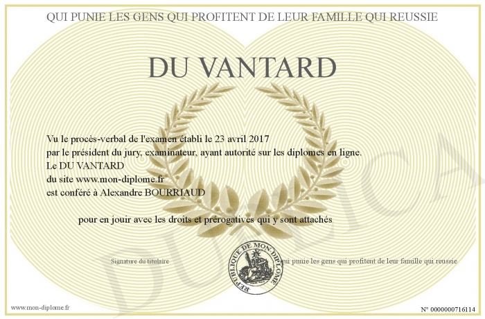 Envoyez par email votre DU VANTARD personalisé