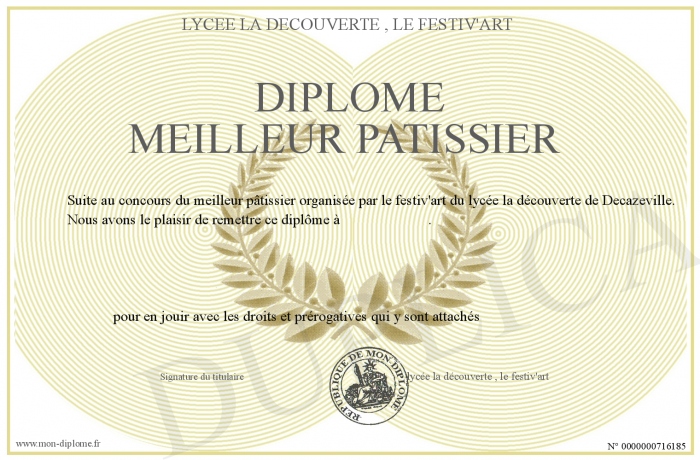 Envoyez par email votre diplôme meilleur patissier personalisé