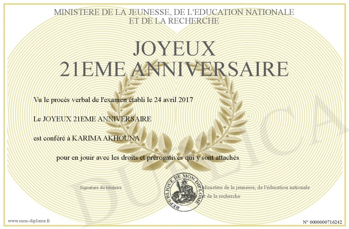 Envoyez par email votre JOYEUX 21EME ANNIVERSAIRE personalisé