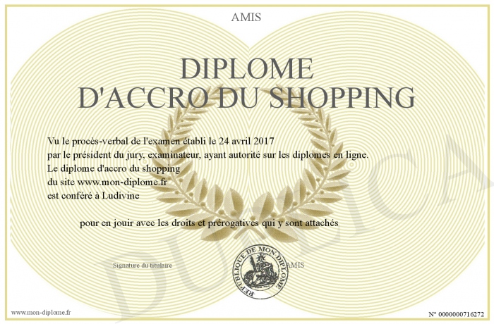 Envoyez par email votre diplôme d'accro du shopping personalisé