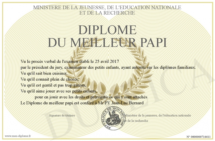 Envoyez par email votre Diplôme du meilleur papi personalisé