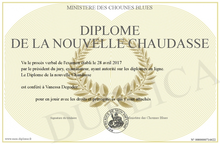 Envoyez par email votre Diplôme de la nouvelle Chaudasse personalisé