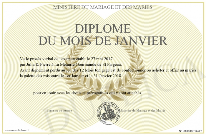 Envoyez par email votre Diplôme du mois de JANVIER personalisé