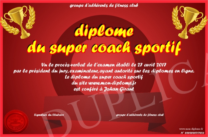 Envoyez par email votre diplôme du super coach sportif personalisé