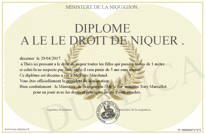 Envoyez par email votre diplôme a le le droit de niquer . personalisé