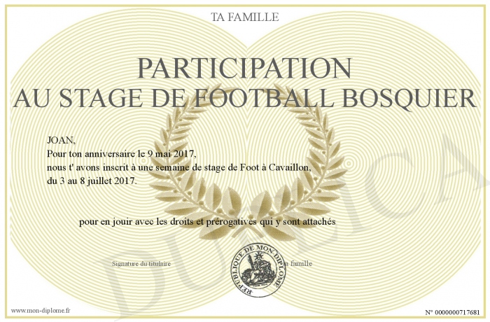 Envoyez par email votre Participation au stage de football Bosquier personalisé