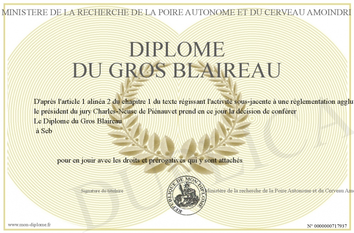 Envoyez par email votre Diplôme du Gros Blaireau personalisé