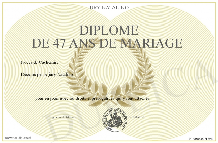 Envoyez par email votre DIPLOME DE 47 ANS DE MARIAGE personalisé