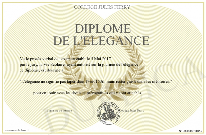 Envoyez par email votre Diplôme de l'élégance personalisé