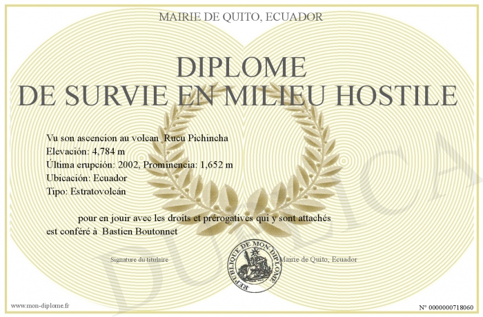 Envoyez par email votre Diplôme de survie en milieu hostile personalisé