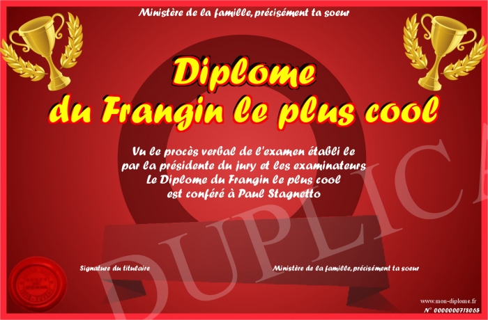 Envoyez par email votre Diplôme du Frangin le plus cool personalisé