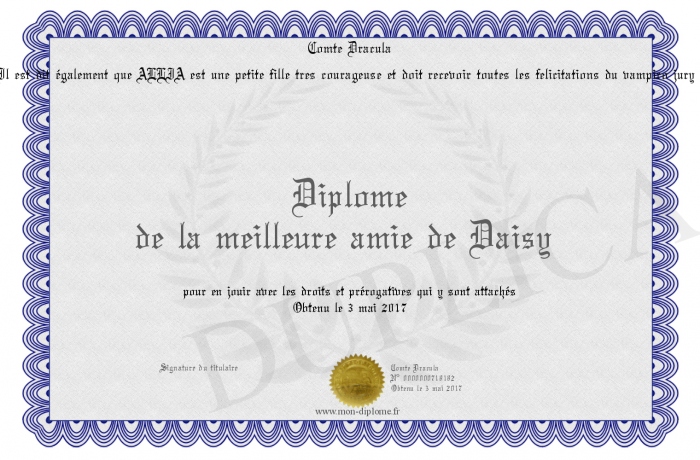 Envoyez par email votre Diplôme de la meilleure amie de Daisy personalisé
