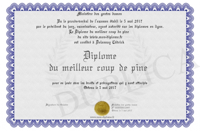 Envoyez par email votre Diplôme du meilleur coup de pine personalisé