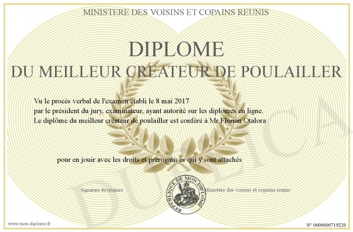 Envoyez par email votre Diplôme du meilleur createur de poulailler personalisé