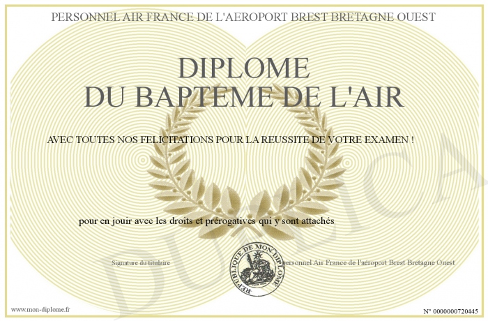 Envoyez par email votre Diplôme du Bapteme de l'air personalisé