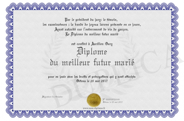 Envoyez par email votre Diplôme du meilleur futur marié personalisé