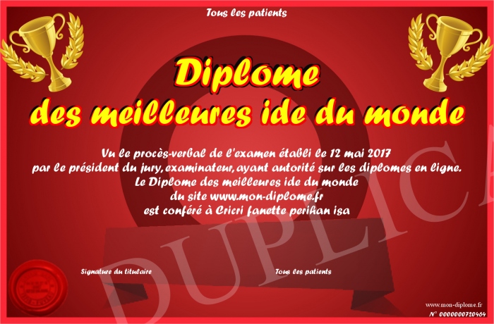 Envoyez par email votre Diplôme des meilleures ide du monde personalisé
