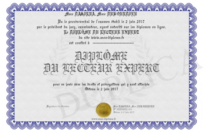 Envoyez par email votre DIPLÔME DU LECTEUR EXPERT personalisé