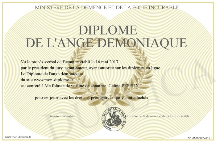Envoyez par email votre Diplôme de l'ange démoniaque personalisé