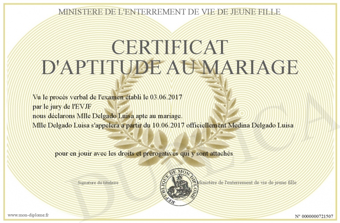 Envoyez par email votre certificat d'aptitude au mariage personalisé