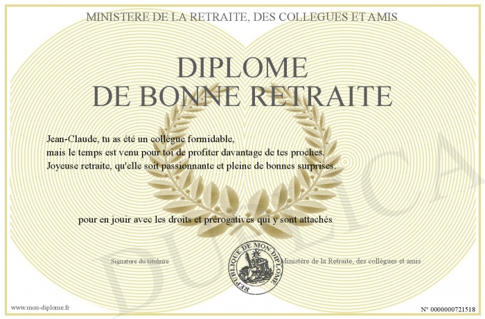 Envoyez par email votre Diplôme de bonne retraite personalisé
