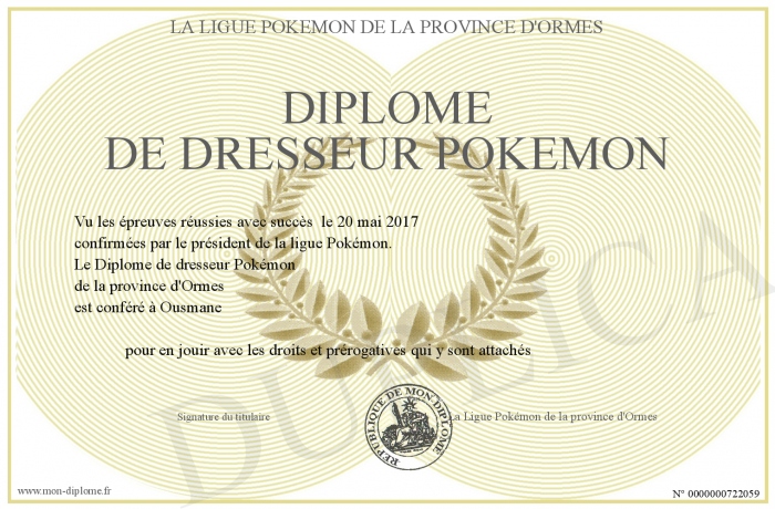 Envoyez par email votre Diplôme de dresseur Pokémon personalisé