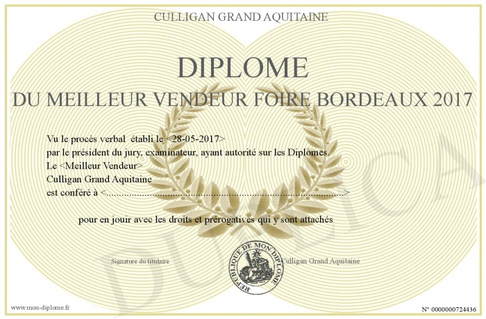 Envoyez par email votre Diplôme du Meilleur Vendeur Foire Bordeaux 2017 personalisé