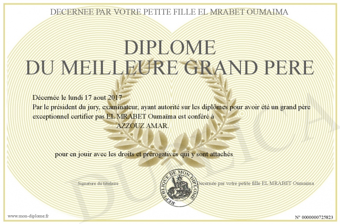 Envoyez par email votre Diplôme du meilleure grand pére personalisé