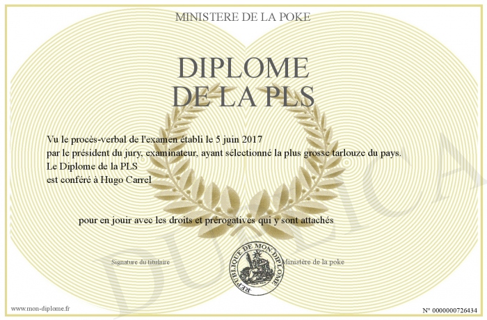 Envoyez par email votre Diplôme de la PLS personalisé