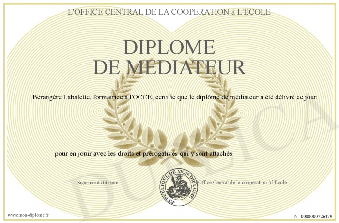 Envoyez par email votre diplôme de médiateur personalisé