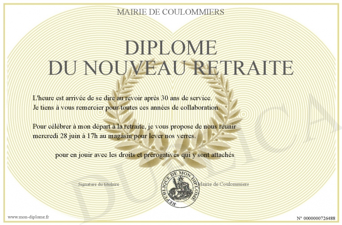 Envoyez par email votre Diplôme du nouveau retraité personalisé