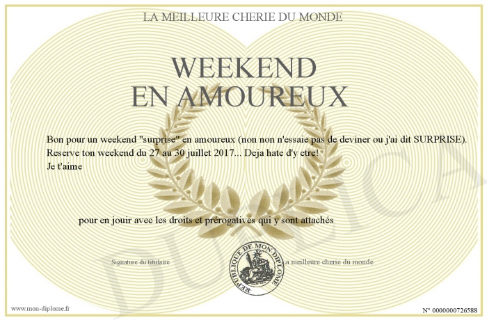 Envoyez par email votre Weekend en amoureux personalisé