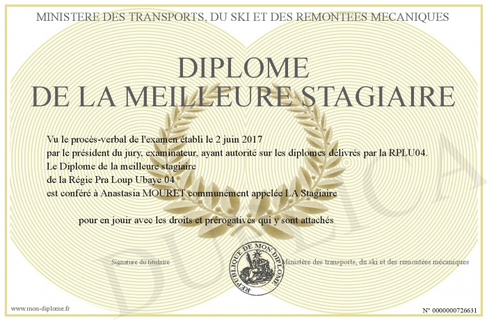 Envoyez par email votre Diplôme de la meilleure stagiaire personalisé