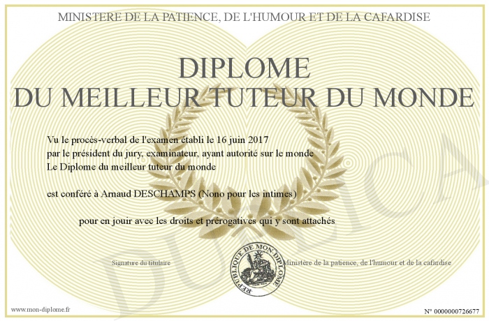 Envoyez par email votre Diplôme du meilleur tuteur du monde personalisé