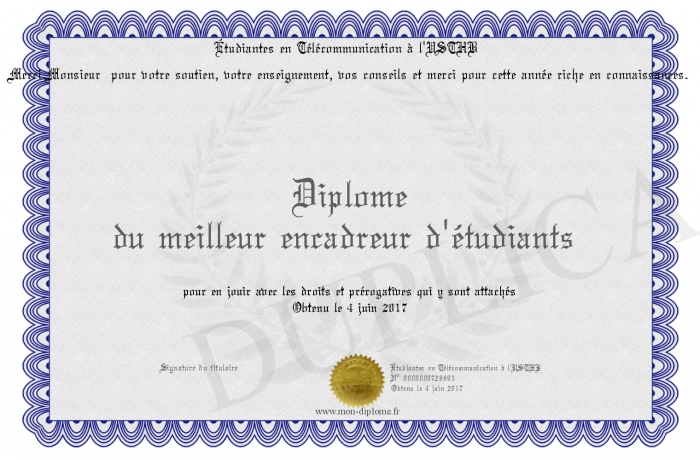 Envoyez par email votre Diplôme du meilleur encadreur d'étudiants personalisé