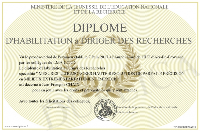 Envoyez par email votre Diplôme d'Habilitation à Diriger des Recherches personalisé