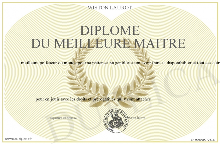 Envoyez par email votre Diplôme du meilleure maitre personalisé