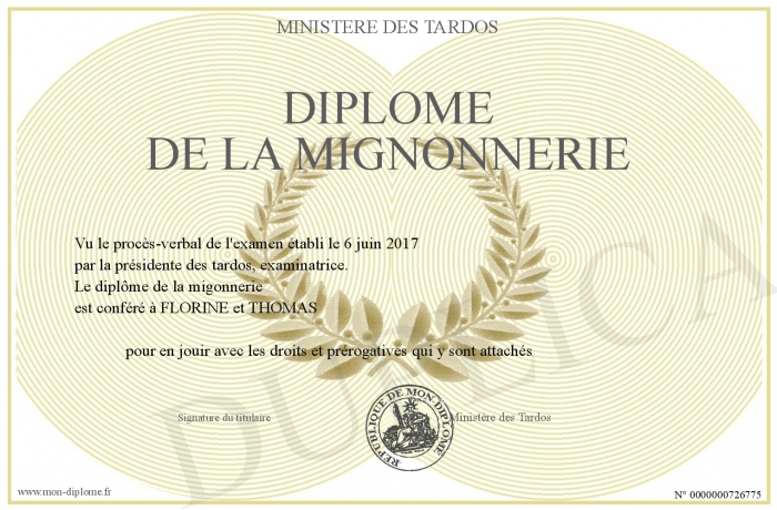 Envoyez par email votre Diplôme de la Mignonnerie personalisé