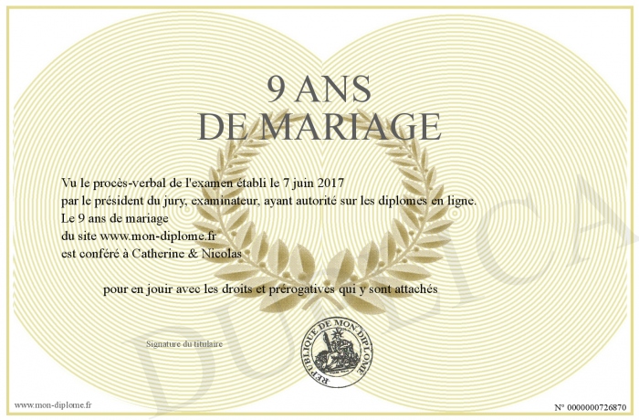 Envoyez par email votre 9 ans de mariage personalisé