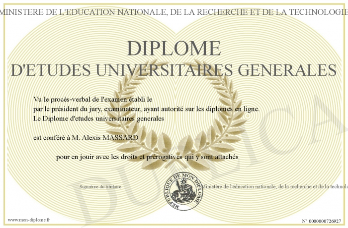 Envoyez par email votre Diplôme d'etudes universitaires generales personalisé