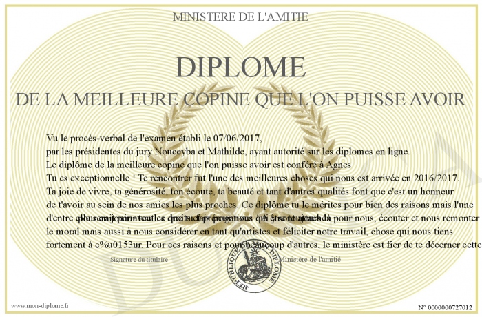 Envoyez par email votre Diplôme de la meilleure copine que l'on puisse avoir personalisé