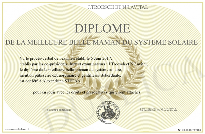 Envoyez par email votre Diplôme de la meilleure belle maman du système solaire personalisé