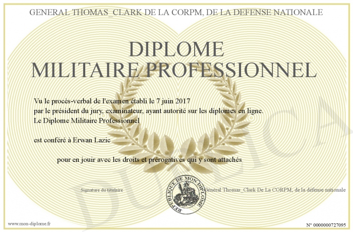 Envoyez par email votre Diplôme Militaire Professionnel personalisé