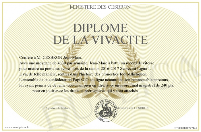 Envoyez par email votre Diplôme de la vivacité personalisé