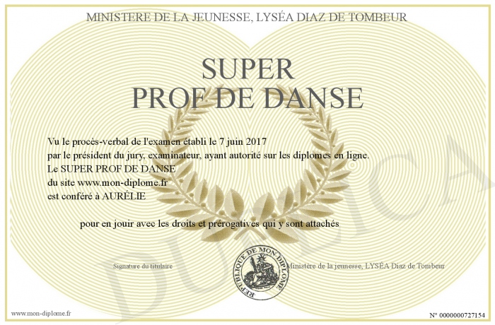 Envoyez par email votre SUPER PROF DE DANSE personalisé